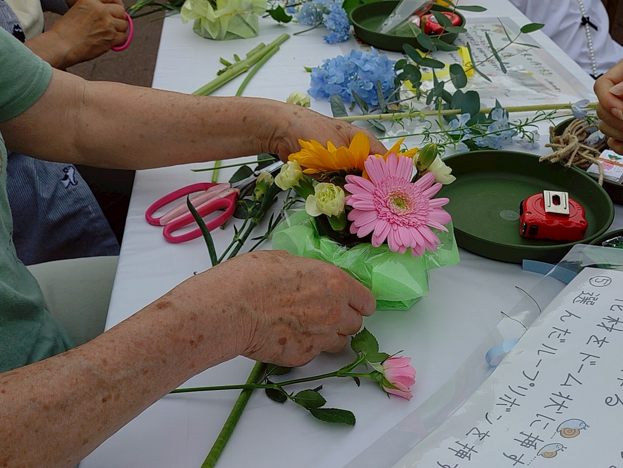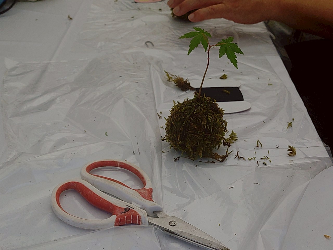 次は都立園芸高校の生徒さんによる苔玉づくりとフラワーアレンジメントの体験です。