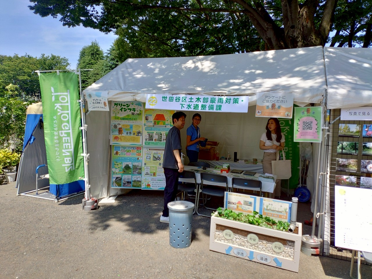 世田谷区土木部豪雨対策・下水道整備課さんの展示。ちまたで流行りの「グリーンインフラ」のご紹介です。