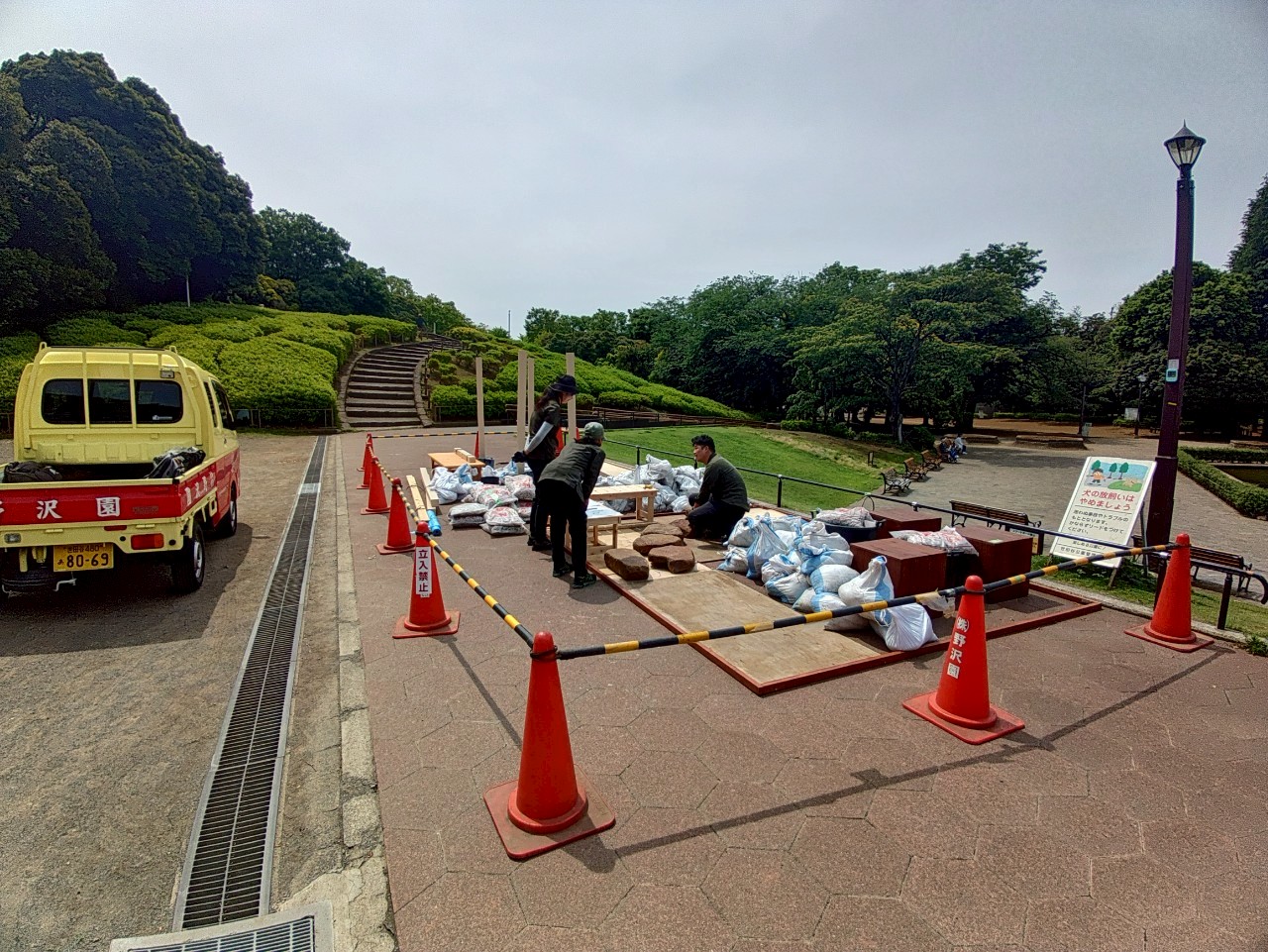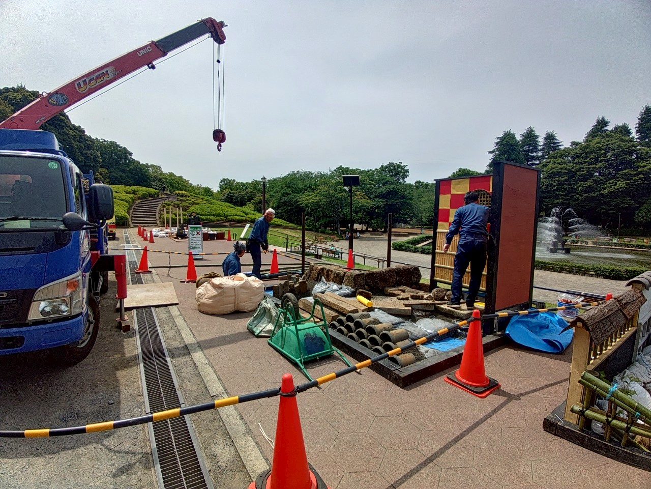 そして、噴水広場周辺では見本庭園の設置が始まっています。